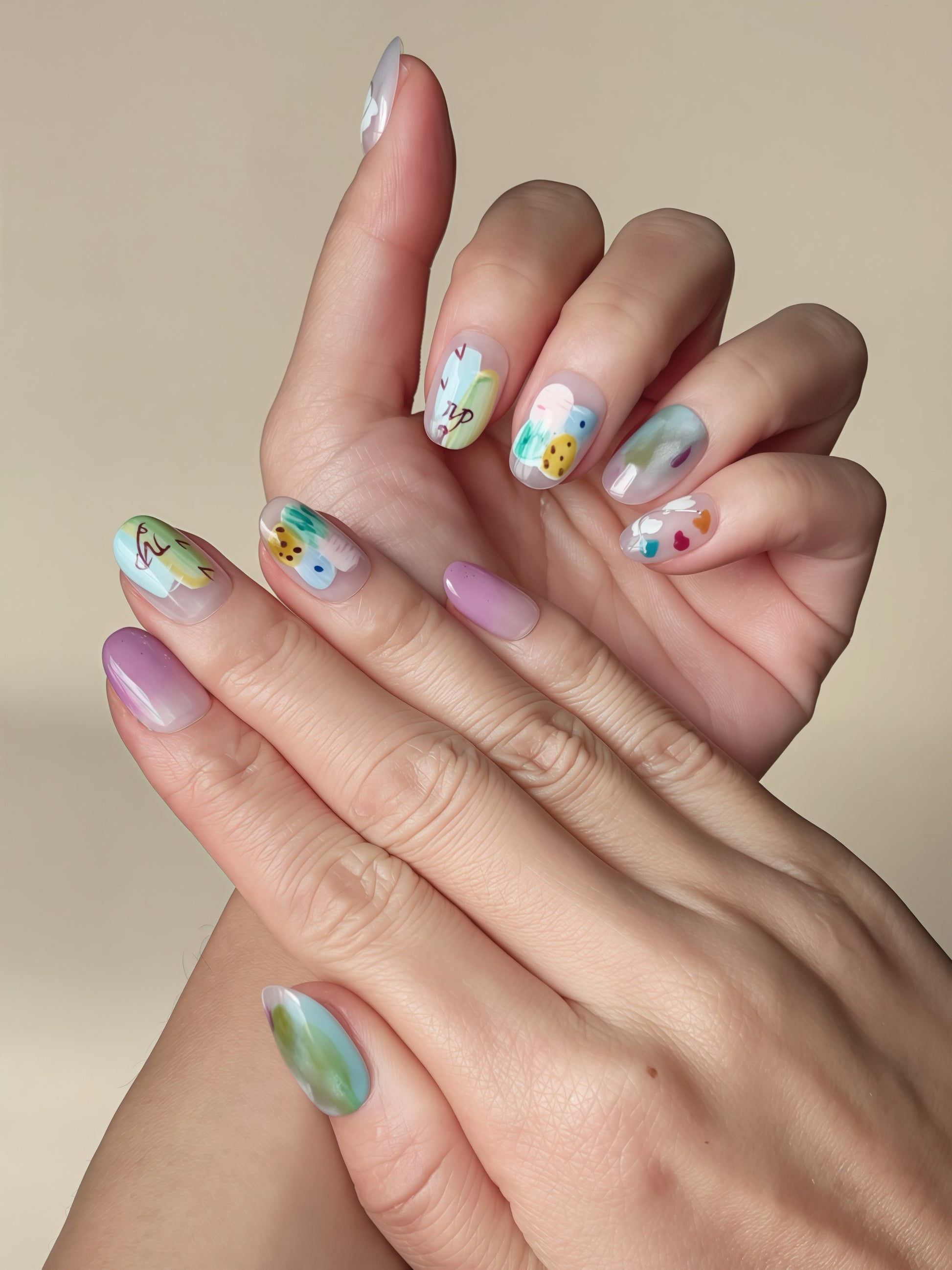 A hand-painted set inspired by a dreamy forest glow. Gentle brushstrokes and layered hues of lilac, blue, yellow, and green dance together like sunlight filtering through leaves — soft, radiant, and full of wonder. Perfect for spring picnics, beach escapes, or a romantic night out